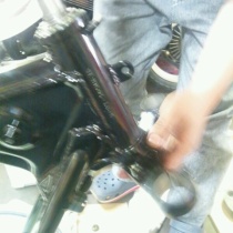 前回に引き続き… ステムの組み付け。 シビアになればなるほど決まらないので… 地味に大変!! しかし、重要ポイントだから慎重に!! 仮組みが完了したら、 フロントフォークをはめ込み、いよいよ 微調整に入ります!! フロントフォークのドップボルトの色、これか ...